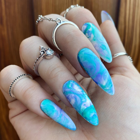Watercolour Marble Press On Nails Tie Dye Stick On Nails Etsy